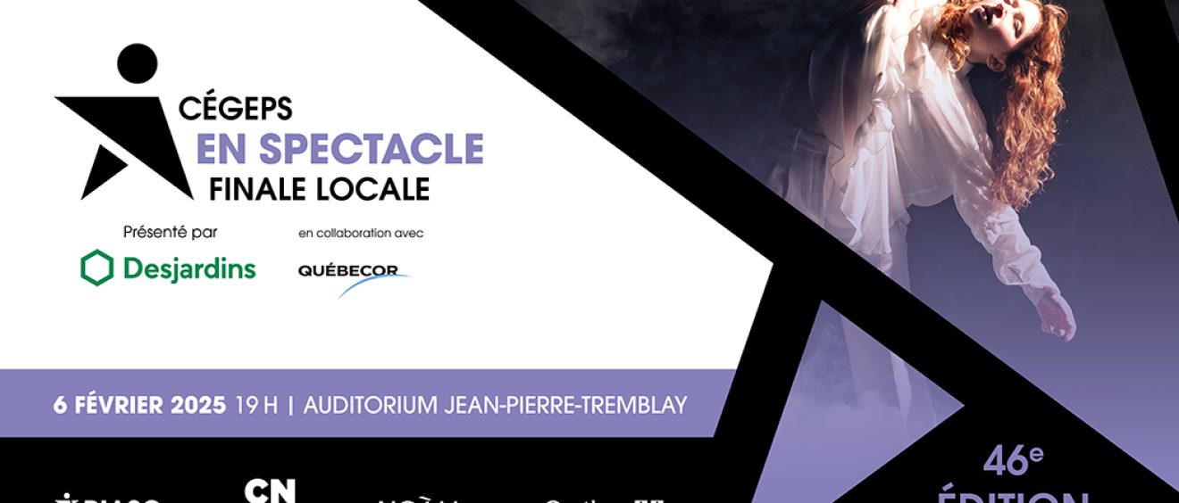 La finale locale de Cégeps en spectacle aura lieu le 6 février à l’Auditorium Jean-Pierre-Tremblay, à 19h. Les billets pour l’événement sont disponibles en ligne dès maintenant. Venez admirer le talent de nos étudiants!